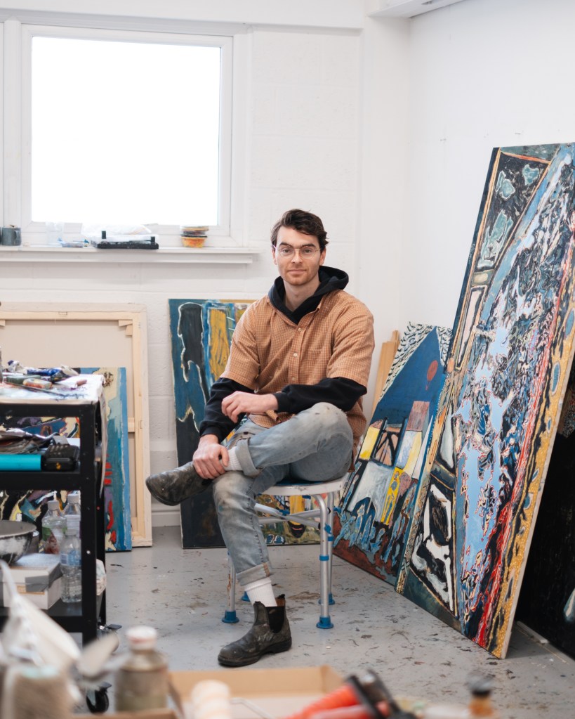 Gavin Gleeson (b. 1995) is an artist who grew up in Kentucky to Irish parents and is currently based in London, where he earned his MA from the Royal College of Art in 2024. In his work, the landscapes, structures and psychological undertones of his upbringing intersect with the cultural echoes of his heritage.
